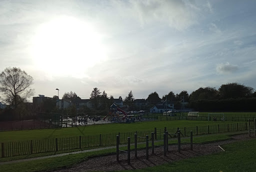 Megaw Park is a well-rounded recreational space offering a large, enclosed play area with diverse equipment suitable for children of all ages, including slides, swings, and climbing structures. Complementing the play facilities are an outdoor gym for adults, multiple football pitches, and tennis courts, making it a versatile destination for families. The park is praised for its cleanliness, ample parking, and the added convenience of an ice cream van on site.