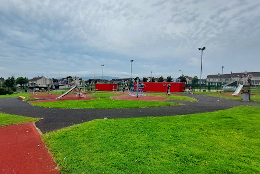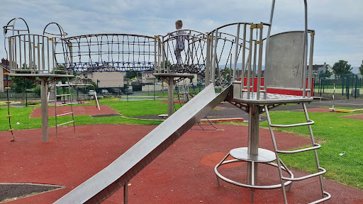 Located in a quiet area next to a renewed community center, this playground is fully enclosed with fences and features benches for parents. Its secure environment allows young children to play freely, and it is adjacent to a large enclosed football/basketball court, making it a safe and convenient spot for families.