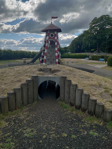 This delightful play park, situated in the heart of a stunning historic village, offers a variety of fun activities for children. It features swings, a climbing frame, a tunnel, a seesaw, and a large sand pit, alongside a good-sized football pitch. Parents will appreciate the ample picnic tables, some of which have games like draughts and snakes & ladders built into them, providing entertainment even during snack times. The park is complemented by nearby parking and clean public restrooms.