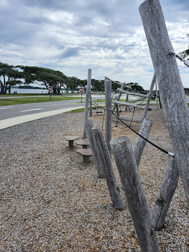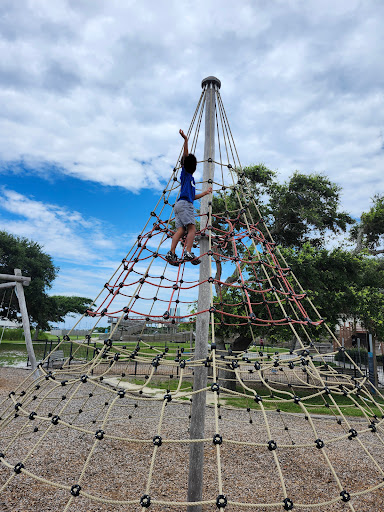 Lake Shelby Playground offers a wonderful natural play experience, featuring innovative structures primarily built from wood and ropes, providing excellent climbing and balancing opportunities. Children of various ages, particularly those between 2 and 12, will enjoy the challenging obstacle course and tall climbing structures. The park is nestled in a beautiful setting with scenic views of Lake Shelby, offering a refreshing and engaging outdoor adventure for families, complete with clean restrooms and drinking fountains.