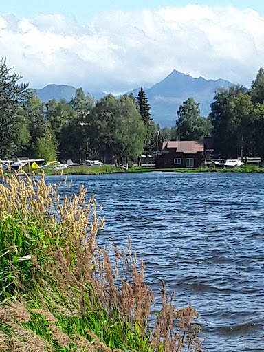 Spenard Beach Park is a beautiful and peaceful lakeside retreat, offering stunning views of Hood Lake and a unique opportunity to watch float planes land and take off. It’s an ideal spot for relaxation, quiet reflection, and enjoying the outdoors. The park includes a small swing set for children and benches for comfortable viewing, providing a clean and serene environment for families and individuals alike to enjoy the natural beauty and aviation spectacle.