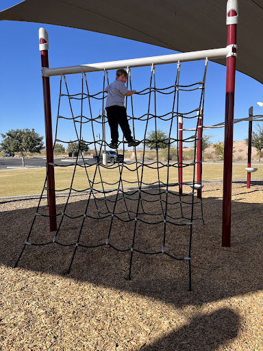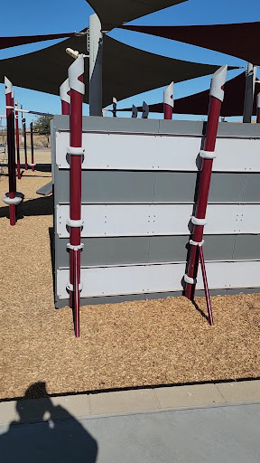 Rittenhouse District Park playground is a versatile destination with features appealing to a broad age range. Younger children can enjoy a small jungle gym, while older kids and teens will be thrilled by the ninja warrior hurdles course. The park also offers shaded picnic tables and clean restrooms, all situated near a picturesque pond with a pleasant walking path.