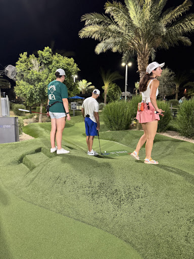 Mini golf experienceDelicious food and drinksPlay structure for kidsFriendly staffFamily-friendly outingUnique entertainment