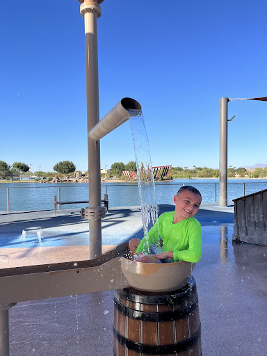 Mansel Carter Oasis Park is a highly regarded destination for families, offering an exceptional and well-maintained splash pad alongside a playground, both generously shaded to provide comfort from the Arizona heat. Children particularly love the fun pirate ship structure and giant watering bucket in the splash pad, ensuring hours of water-based enjoyment. The park also features clean restrooms, a musical display, and scenic lakes, making it a wonderful spot for both active play and relaxed outdoor enjoyment.