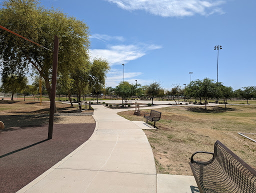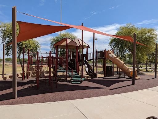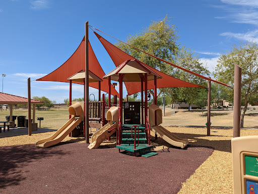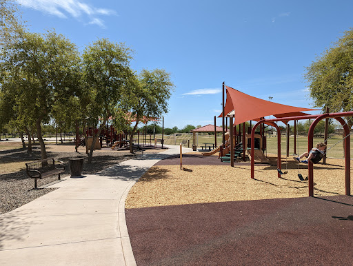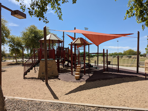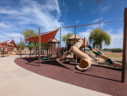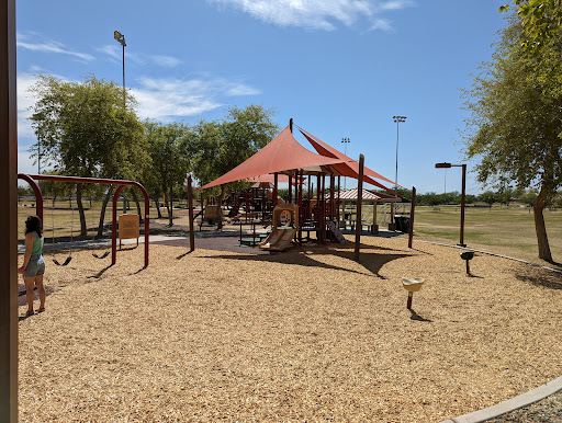 This is a spacious and well-maintained park featuring a larger-than-average playground with distinct areas for toddlers and older children. Families particularly appreciate the ample coverage over play equipment, providing comfortable shade from the heat. The park also boasts a fun dino and log cabin theme, along with clean restrooms, covered picnic areas with grills, and multiple sports fields for extended family enjoyment.