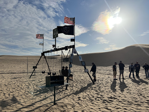 The Glamis swingset, though now removed, was celebrated as a magnificent and unique landmark situated amidst the stunning sand dunes. It offered a fun spot to take a break from off-road adventures, enjoy the high swings, and capture memorable photos. This distinctive art installation was a popular meeting point, providing a unique experience for families and friends visiting the area.