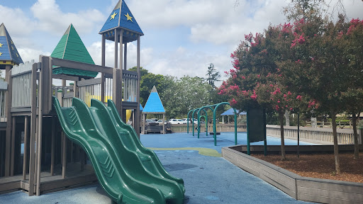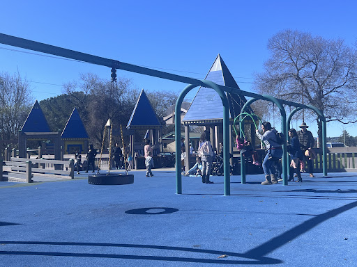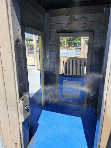 Matteo’s Dream Playground is highly regarded for its thoughtful design that prioritizes safety, especially for toddlers, with a dedicated area for the 2-5 age group and structures designed to prevent falls. Families enjoy the variety of swings, including an inclusive parent-baby swing, and the cooling water mist stations, which are perfect for hot days. The cushioned ground surface adds to the safety, and the overall spacious layout provides an engaging environment for children of different ages.
