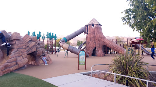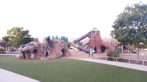 Sabercat Play Area at Central Park is a highly acclaimed destination offering a wide array of engaging, themed play structures suitable for toddlers through school-aged children. Families will enjoy the diverse climbing options, multiple slides, and unique elements like the Sabercat rock mountain and spinning mushroom. The park boasts beautiful scenic views of Lake Elizabeth and Mission Hills, alongside spacious grassy areas perfect for open play. Visitors also benefit from well-maintained restrooms and convenient free parking, making it an ideal spot for a fun family outing.