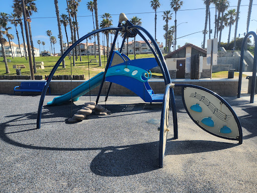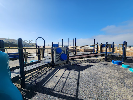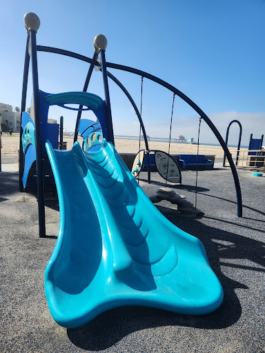 The HB All-inclusive Playground, also known as Pirate Park, is a fantastic destination located directly on the beach, offering a unique pirate-themed play experience. It is highly praised for its accessibility, featuring rubber matting throughout, ramps, and an inclusive swing, making it welcoming for all children. The park provides multiple slides, swings for toddlers and older kids, and a “tightrope and plank” for adventurous play. Families will appreciate the nearby clean restrooms, drinking fountains, benches, and large grassy areas perfect for picnics, all within a short walk to the pier and ocean.