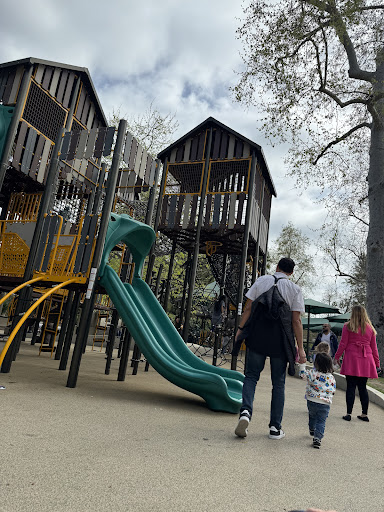 The Playground at Holmby Park is a truly wonderful spot featuring new, engaging play structures with slides, swings, and climbing activities suitable for babies, toddlers, and young kids alike. It boasts a soft rubber ground for safety and ample shaded seating areas. Visitors appreciate the convenient street parking, nearby food and coffee vendors, and the beautiful, clean environment, making it a joy to visit with family.