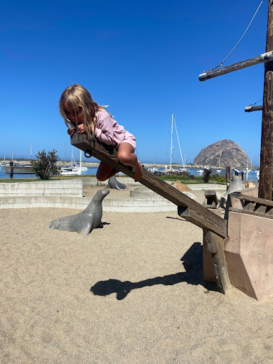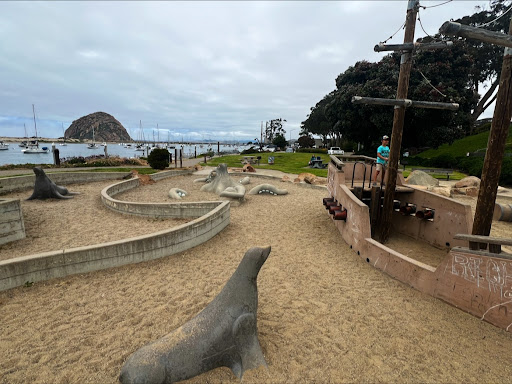 Tidelands Playground is a standout park featuring imaginative, custom-built nautical play structures, including an impressive pirate ship, all set in soft sand. Visitors are consistently captivated by the stunning views of Morro Rock and the serene bay, often spotting sea otters and various birds. The park is praised for its exceptional cleanliness, well-kept green spaces, and convenient amenities such as picnic tables, BBQ grills, and clean restrooms, making it an ideal spot for families to relax and enjoy the beautiful waterside setting.