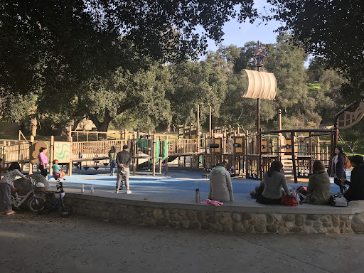 Brookside Park Playground is a captivating destination dominated by a large, awesome pirate ship structure that sparks imaginative play, complete with nautical details like cannons and a ship’s wheel. The park is meticulously clean and well-maintained, featuring responsive rubber surfacing designed to minimize injuries and create an oceanic feel. Ideal for children from toddlers to around eight years old, it offers various play elements including slides, stairs, and bridges. Conveniently located with readily available clean restrooms and plenty of parking, it’s a fantastic spot for families to spend a fun-filled afternoon.