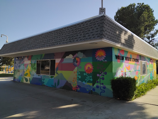 Willie White Park offers several appealing features including multiple benches and grills, making it suitable for picnics and gatherings. Visitors can enjoy the new planted trees which will provide shade, and appreciate the attractive paintings on the building and sidewalk, adding an artistic touch to the park.