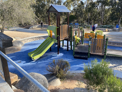 Chollas Lake Park Gloria’s Mesa boasts new and amazing play equipment, offering diverse structures for both younger and older children, along with an outdoor gym for adults. The park provides stunning views of Chollas Lake, creating a serene and beautiful environment for families. Visitors can also enjoy clean paved pathways and the convenience of ample nearby parking, making it an excellent spot for an active and enjoyable family outing.