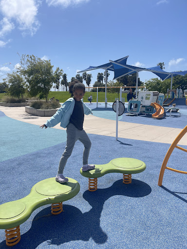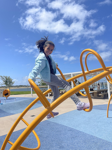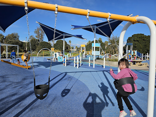 Tecolote North Playground is a wonderfully upgraded park praised for its new and diverse range of equipment suitable for all ages, from toddlers to teens, including a dedicated section for older children and exercise equipment for adults. Visitors can enjoy an array of features like swings, slides, climbing structures, a zipline, and unique musical instruments. The park also boasts a sand play area, clean restrooms, picnic tables, and shaded areas, all within a beautiful bay-front setting with pleasant breezes and accessible play options for children with disabilities.