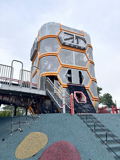 Paco Sanchez Playground stands out as an incredibly unique and well-designed urban park, featuring an impressive and adventurous climbing tower as its centerpiece, alongside huge slides and spinning elements. It offers diverse play opportunities that captivate children of various ages, from adventurous toddlers to school-aged kids. The park also boasts a seasonal water park, expansive open grass fields, and walking paths, providing ample space for exploration and exercise. Families can enjoy plenty of seating and picnic tables under the shade trees, making it a fantastic destination for an engaging day out.