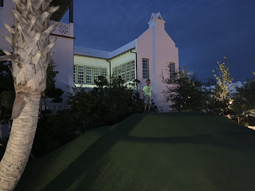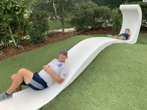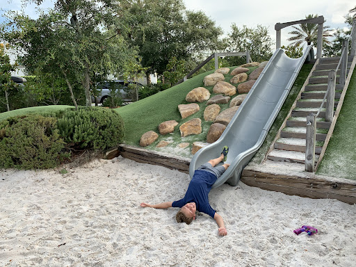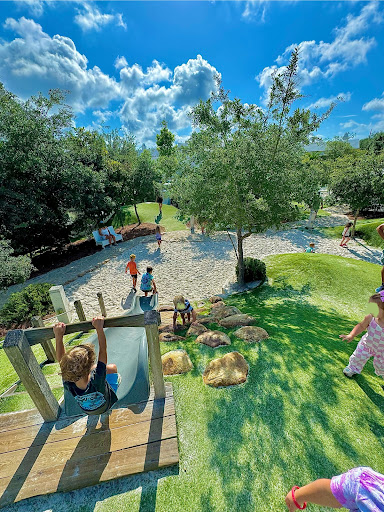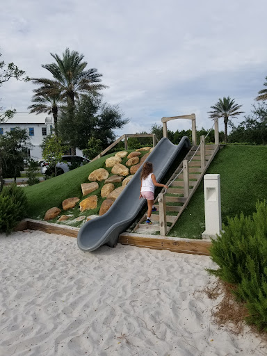 Alys Beach Playground is a visually appealing, modern park known for its unique design featuring rolling artificial turf hills and artistic landscaping that children love to explore. It offers engaging play elements like swings and a musical rock box, with different areas catering to various age groups. Its proximity to coffee shops and smoothie bars makes it a convenient stop for families seeking a pleasant outdoor experience.