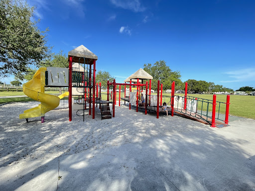 This park offers a sandy play area, providing a natural surface for children to enjoy. It is a good little park where families can have a great time. The presence of a walking path also makes it suitable for those looking for outdoor activity.