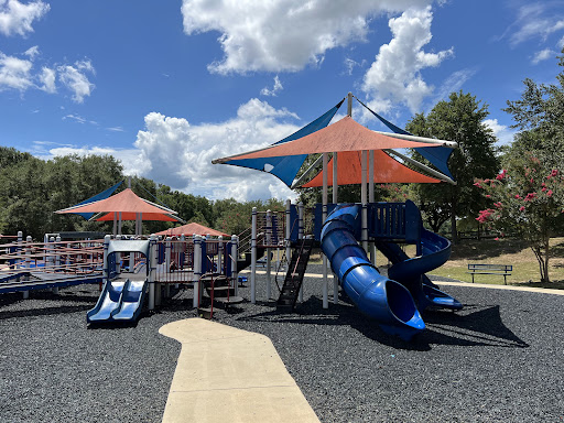 Rotary Centennial Playground is a spacious and well-equipped park that offers a fantastic variety of play options for children across all age groups. It boasts an impressive array of swings, including inclusive options and a tire swing, alongside slides and jungle gyms. The playground is notable for its commitment to inclusivity, featuring ramps and accessible equipment, and provides essential amenities like nearby restrooms, picnic tables, and shaded seating areas. A unique mist machine adds a fun way to cool down, and its location within a larger park with paved paths for walking and biking adds to its appeal for a full family outing.