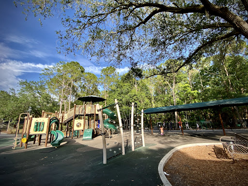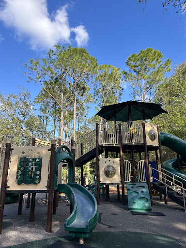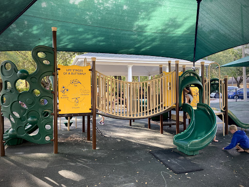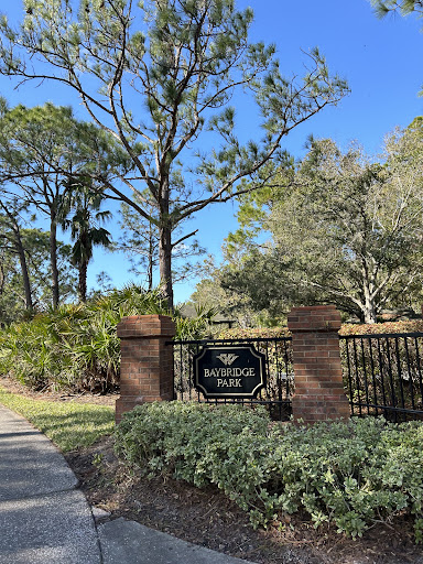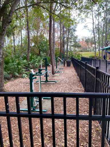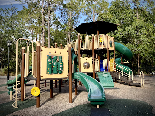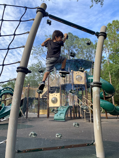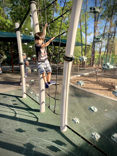Baybridge Park is a highly-rated, well-maintained playground offering a wide variety of play structures including slides, swings, seesaws, and a rock-climbing wall, ensuring something for every age group. Families appreciate the peace of mind provided by the fully fenced play area and the rubberized flooring for safety and accessibility. The park boasts excellent amenities such as clean restrooms, water fountains, and plenty of shaded picnic areas and benches. Beyond the playground, visitors can enjoy walking trails through small forest areas and outdoor exercise equipment, making it a fantastic destination for a full family outing.