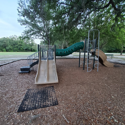Hillary Park offers a pleasant outdoor experience with a well-equipped playground featuring slides, swings, and a jungle gym, partially shaded by moss-laden oak trees. The park boasts good facilities, including clean restrooms, a small walking trail, a baseball field, and a basketball court, providing ample space for children to play and families to enjoy outdoor activities. It’s considered a decent and nice park for family fun, with adequate parking available.