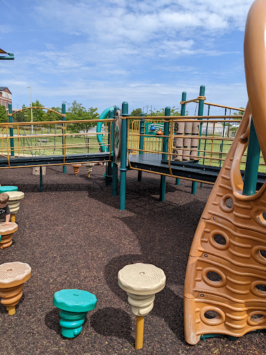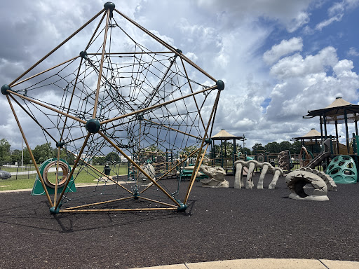 Bridging The Gap Community Playground is a spectacular and modern outdoor play area boasting an impressive variety of activities, including swings, slides, and extensive climbing structures like a huge rope climbing feature. The park’s engaging design and apparent dinosaur theme appeal to children of all ages, while parents appreciate the fenced and enclosed play area with good visibility from benches, offering a safe environment for their children to explore and play.