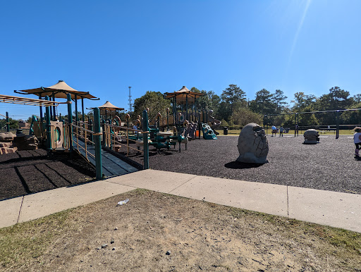 Modern Playground DesignExtensive Climbing StructuresFamily Safety (fenced)Lack of ShadeNo RestroomsDinosaur Theme