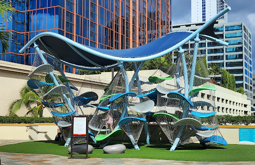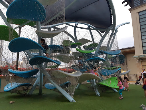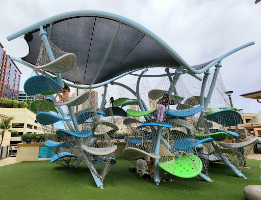Ala Moana Playground Climber is a unique outdoor play space situated on the third floor of the Ala Moana Center, offering a convenient and free spot for families to take a break from shopping. Designed primarily for younger children, the playground features a main climbing structure with a padded artificial turf surface for safety. Reviewers consistently praise its cleanliness, safety, and the generous shade provided by the mall’s structure, along with comfortable seating for parents to supervise. It serves as an ideal place for kids to burn off energy while parents relax.