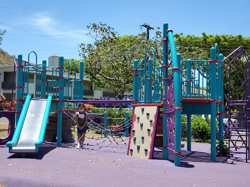 Kamamalu Playground offers a variety of sports facilities including tennis, basketball, baseball, and softball, making it suitable for active individuals and groups. The presence of 24-hour security enhances safety for visitors, particularly for night-time activities like dog training. The playground itself features a slide, climbing wall, and cabled net, providing basic play options for children.