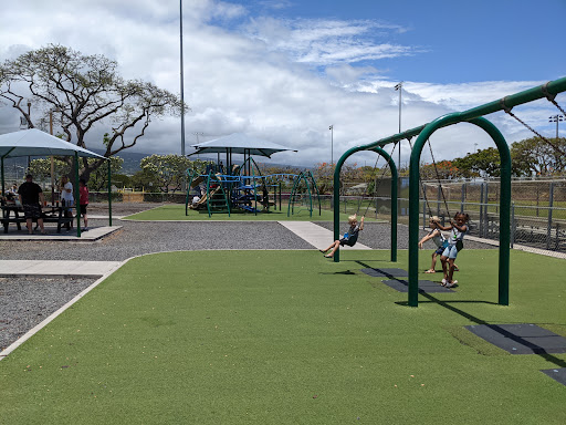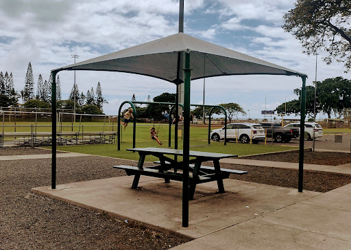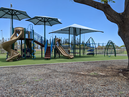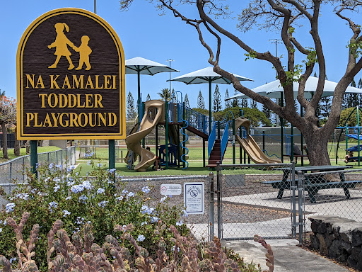 Nākamalei Playground offers a well-designed play experience with distinct, shaded play structures for both toddlers and older children. It is fenced and gated, providing a secure environment for kids, and includes essential amenities like clean restrooms, multiple shaded picnic areas, and a drinking fountain. While the artificial turf surface has seen better days, the park is praised for its comprehensive shade coverage over equipment and seating. Its convenient location near baseball and soccer fields, with easy access to the ocean for sunset views, makes it a popular spot for families, despite some occasional cleanliness or behavioral concerns from other park users.