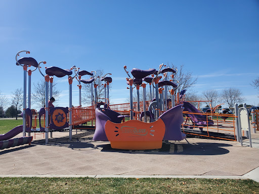 West Park Playground is a well-regarded, family-friendly park featuring a playground with a unique and exciting space-ship theme that children particularly enjoy. The park also offers extensive amenities beyond the playground, including basketball courts, baseball fields, and a covered picnic area, providing a versatile outdoor experience for visitors.