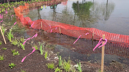 Pebble Beach Park offers direct access to a beautiful lake, making it a great spot for fishing enthusiasts and those who enjoy natural surroundings. Visitors can appreciate the new native plantings along the south shoreline, enhancing the park’s scenic appeal. The park serves as a convenient public lake access point, drawing families who enjoy outdoor activities beyond just the playground.