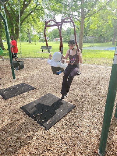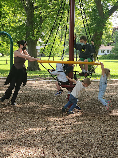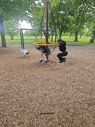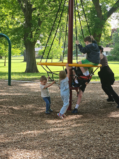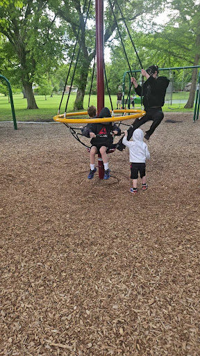 Hunter Park Playground is a wonderfully shaded and secluded spot, ideal for families with toddlers and young children aged 2-7. The park features updated equipment, including various slides, swings, a tire swing, zipline, and a small seesaw, all designed to be safe and engaging for little ones. It also offers ample open grass for running, picnic tables for family meals, and additional amenities like tennis and basketball courts, making it a well-equipped and clean destination for outdoor fun.