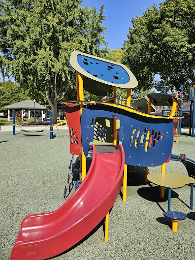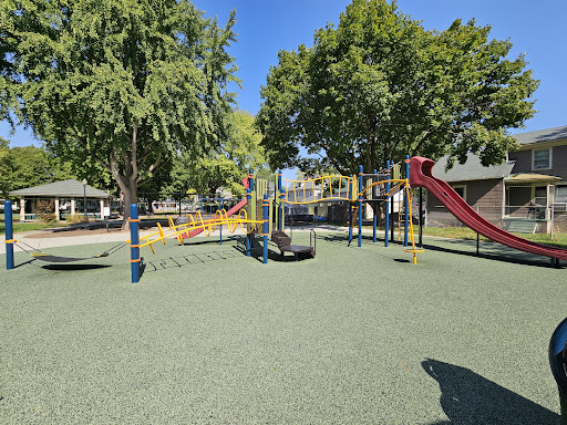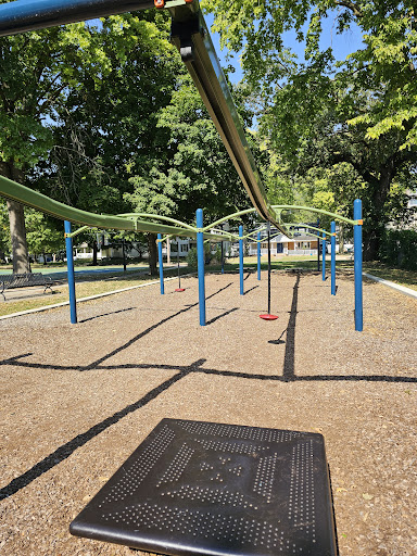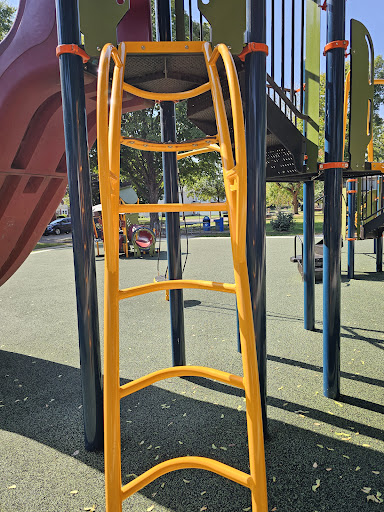 Eastside Park playground features a fantastic green rubber flooring, providing a super soft surface that’s great for kids. It offers separate playhouses catering to both younger and older children, ensuring age-appropriate fun. Families will especially love the exciting ziplines, which are enjoyable for both kids and adults. The park also provides decent shade and ample benches for comfortable visits.