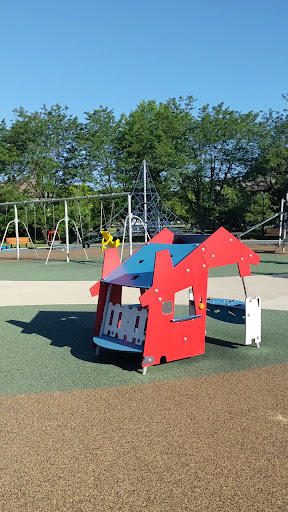O’Bannon Playground is a fantastic destination for families, featuring a well-designed play area with distinct sections for toddlers (ages 2-5) and older children, including slides and a climbing structure. Visitors love the refreshing splash pad and the variety of swings, including toddler, regular, and adaptive options. The park offers convenient amenities such as shaded picnic tables, charcoal grills, water fountains, and restrooms, alongside a large open field perfect for baseball or soccer, and a small walking trail in a wooded area. The playground is noted for its clean artificial turf surface, making it a safe and enjoyable environment for kids.