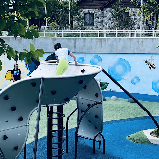 Howard Park offers a fantastic modern playground experience with a unique design, including various slides and an impressive climbing area. Children of all ages will love the soft foam flooring and the exciting water features like the splash pad. Families can also enjoy the scenic walking and bike paths along the river, accessible heated restrooms, and nearby food options, making it a vibrant destination for a full day out.