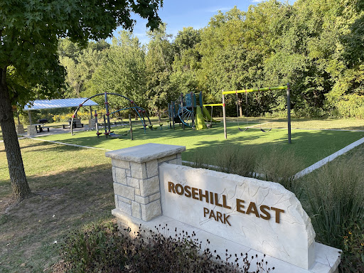 Rosehill East Park is celebrated as a new, spacious, and well-maintained park located in a quiet neighborhood. It features a modern playground with slides, swings (including a baby swing), and a climbing apparatus, all set on a preferred artificial turf surface. Families can also enjoy the picnic tables and the scenic walking trails nearby, making it an ideal spot for a peaceful and enjoyable outing, especially for younger children.