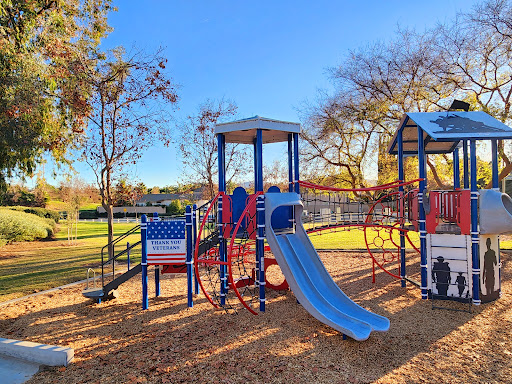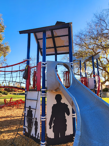 Veterans Park Playground is a wonderfully engaging play area offering a variety of activities for children, including multiple slides and rope climbing structures. A distinctive large red metal plane adds a unique and imaginative element, making it a memorable spot. It’s considered a great local area for nearby residents to visit and enjoy active play.