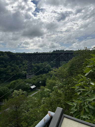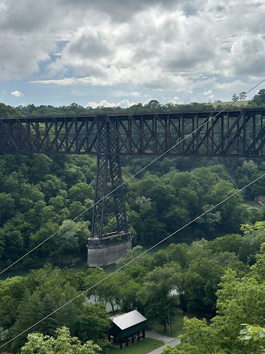 High Bridge Park offers a charming small playground and a few swings, providing a pleasant spot for children to play amidst beautiful scenery. Families can enjoy gatherings at the large covered pavilion, which offers plenty of room for kids to run freely. The park also features historical elements like a train car and caboose, picturesque views of the High Bridge, and walking paths for enjoyable strolls. Parking is available, and despite main restrooms sometimes being closed, clean porta-potties are provided.