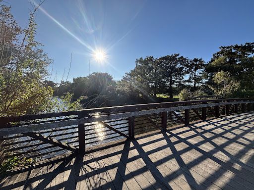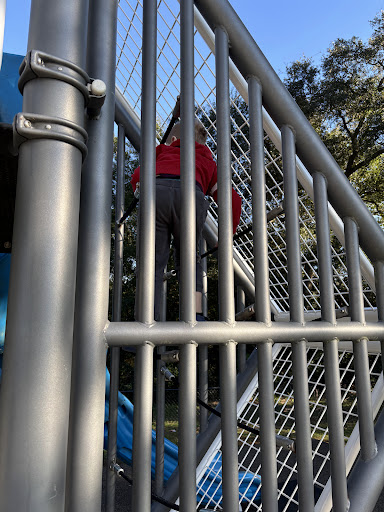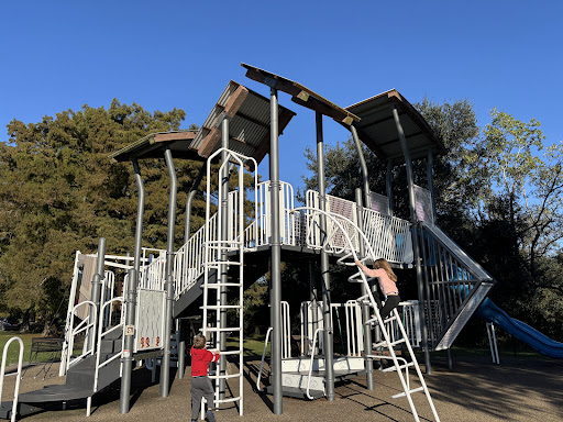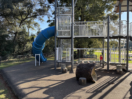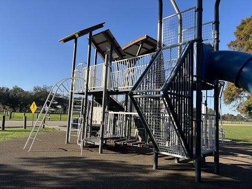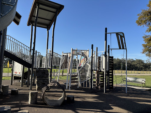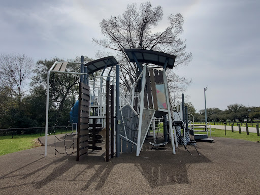 Magnolia Playground is a highly recommended modern play area, thoughtfully designed with a strong emphasis on climbing and developmental activities. It features nature-inspired structures, including rope walls and monkey bars, making it ideal for active children. The park offers excellent shade from surrounding trees and expansive grassy areas, perfect for free play and picnics, while also providing convenient access to nearby walking paths for further exploration.