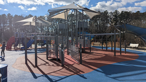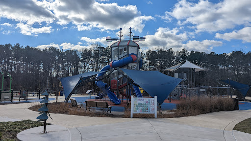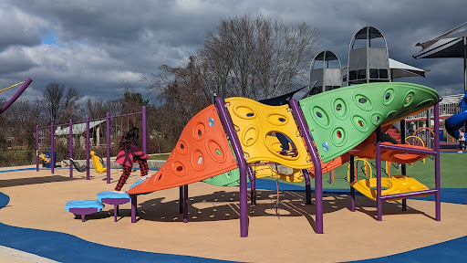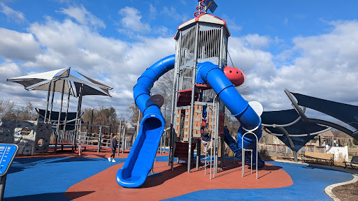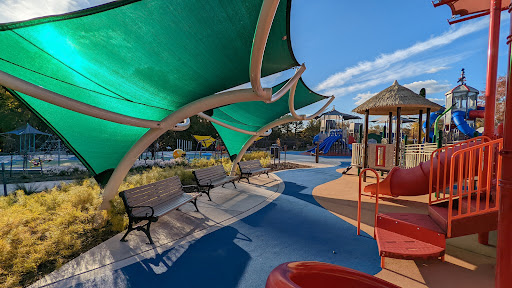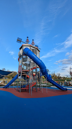 Blandair Regional Park North Playground is an exceptionally large and well-designed destination, boasting five distinct themed sections like pirate, dinosaur, and space, offering a vast array of activities for children of all ages. Families particularly love the soft, cushioned fall surfaces, extensive accessible equipment, and clean facilities, including restrooms, drinking fountains, and ample shaded picnic areas. The park is also entirely fenced and double-gated, providing a safe and enjoyable environment for everyone.