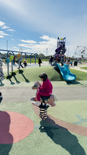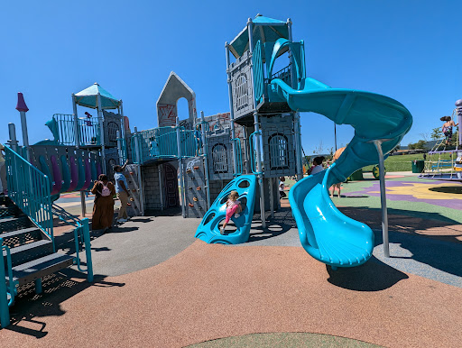 Sophie & Madigan’s Playground is a highly celebrated destination, featuring a beautiful and well-designed whimsical or Wonderland theme with castle structures and engaging scavenger hunts. It offers a wide variety of equipment, including slides, swings, and climbing structures, catering to children of all ages. Families appreciate the ample space for running around, comfortable shaded seating, and convenient parking, making it an ideal spot for a fun-filled day.