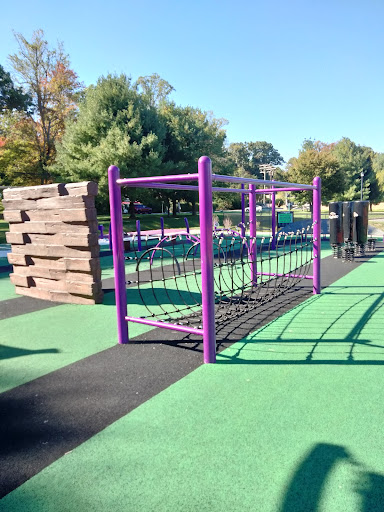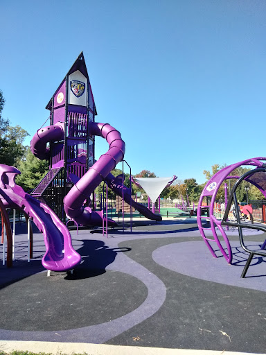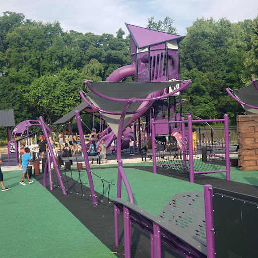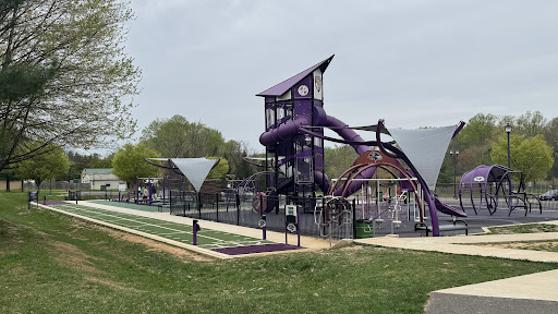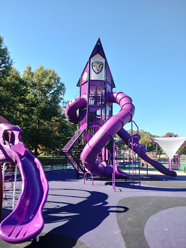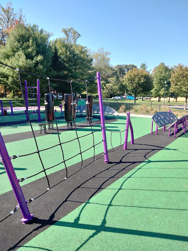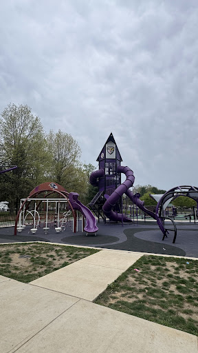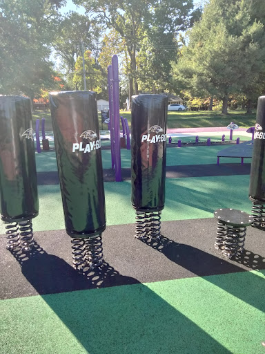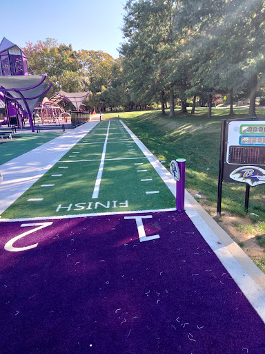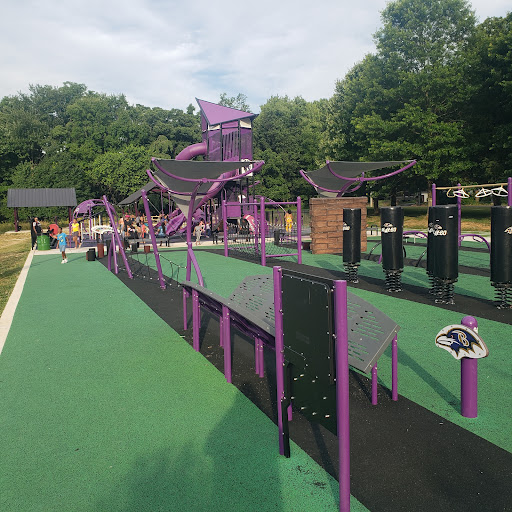 Ravens Playground is a highly-rated, football-themed park, generously donated by the Ravens football team, offering a fantastic experience for children. It features a massive slide, musical elements, a revolving cargo net, and an obstacle course, all protected by soft rubber flooring for safety. Families appreciate the ample parking, picnic tables, and benches, as well as an adjacent open grass field and an outdoor gym for adults, making it a great destination for active family fun.