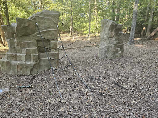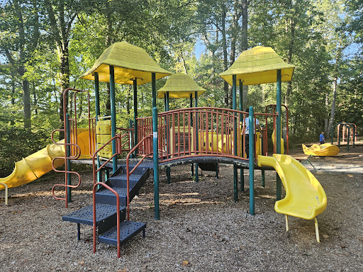 White Plains Park Playground is a well-maintained and family-friendly park featuring multiple distinct play areas, catering to children of all ages. Visitors can enjoy a popular sandbox with an excavator, various climbing webs and rock walls, and several playground sets. The park also provides ample seating with picnic tables and benches, along with walking trails, making it a great destination for a quiet and enjoyable outdoor family outing.