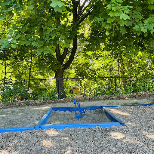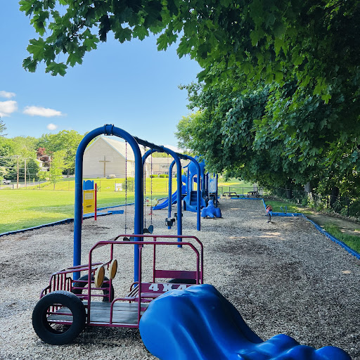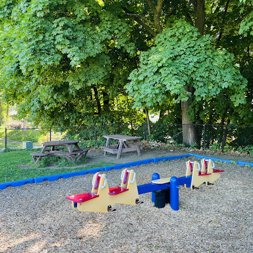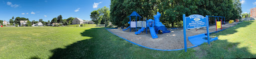 Fay Scharmett Memorial Playground is a charming, shaded oasis perfect for toddlers and younger children, offering age-appropriate equipment and interactive vehicles like a fire truck and school bus. The playground is fully fenced, providing a safe and secure environment where parents can feel confident letting their little ones explore freely. It features picnic tables under ample shade and an adjacent large grassy field with soccer goals, making it a wonderful, quiet spot for families to enjoy outdoor play. The local moms group also maintains a bin with helpful supplies like diapers and wipes for visitors.