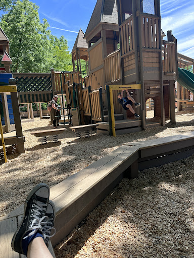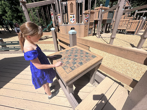 Castle themeWood-like structuresVariety of playBasketball courtsShaded areasBike/walking paths