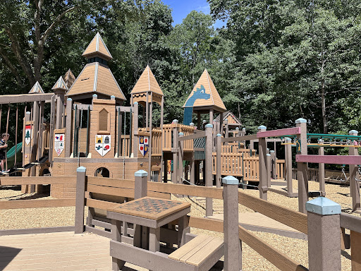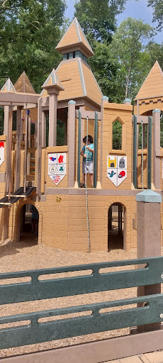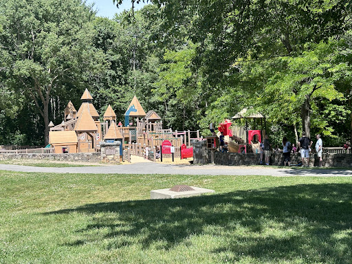 Castle in the Trees Playground is a highly imaginative and well-loved park, featuring a unique castle structure that provides abundant opportunities for climbing, swinging, and sliding. It offers dedicated play areas for both younger and older children, along with basketball courts and paved paths perfect for biking or walking. The playground benefits from good shade provided by surrounding trees and has public restrooms, making it a comfortable and engaging destination for families.