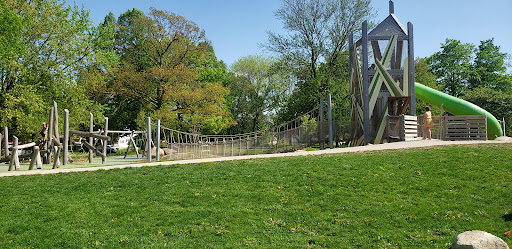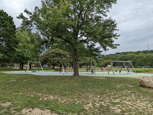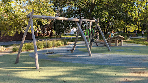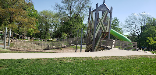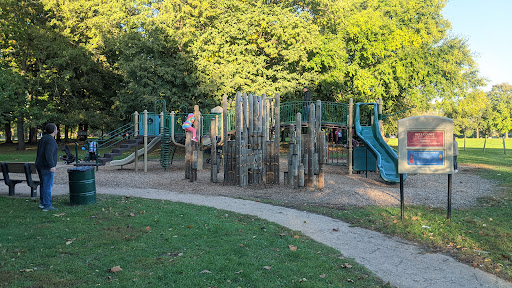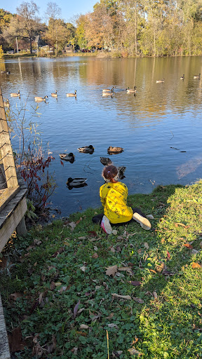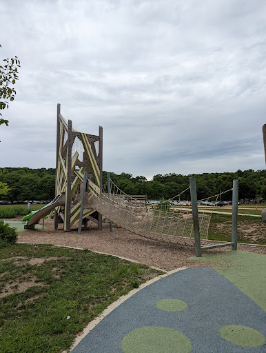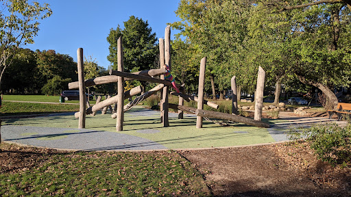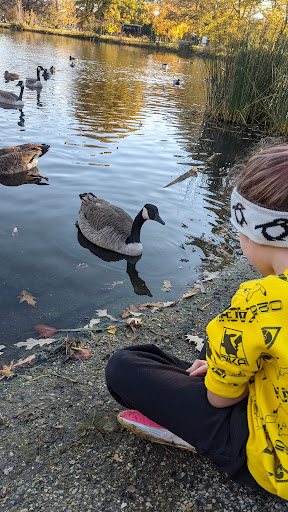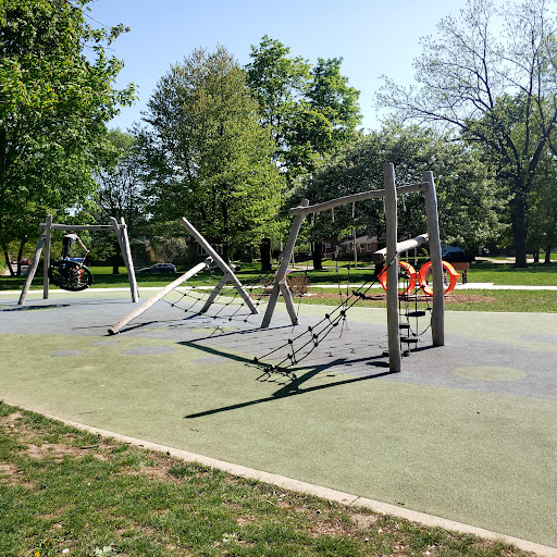 This “awesome” park boasts a unique playground setup with fun climbing equipment and various obstacles, all situated on a soft rubber cushioning surface for safety. It caters to children of all ages, featuring two separate playground areas. Visitors appreciate the abundant shade provided by trees and a covered pavilion, along with picnic tables for comfortable family outings. The park also includes an open field perfect for kites and drones, and a pond where kids love to feed ducks and geese.
