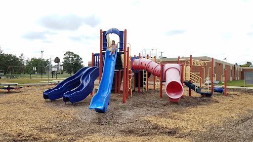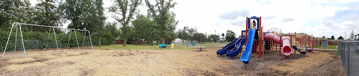 Project Playground offers a nice, modern play experience with plastic and metal equipment, including slides, swings, and monkey bars. The fenced area provides a secure environment for children to play freely. Located adjacent to a school, it’s a convenient and well-equipped spot for kids to enjoy active play, including basketball hoops.