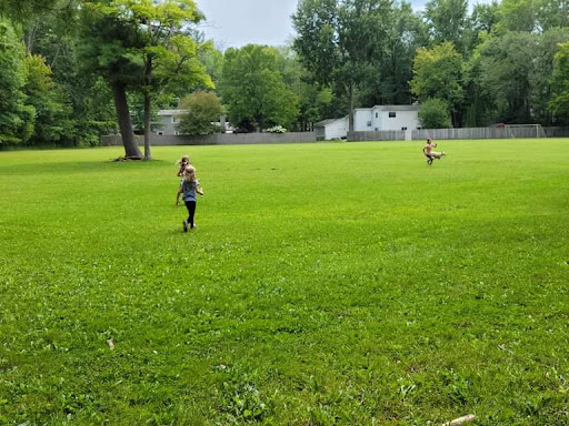 Cook Playground stands out as a wonderfully shaded park, thanks to numerous large trees that cover most of the play equipment, making it comfortable even on sunny days. It features a great mix of play structures for various ages, alongside expansive, well-maintained grassy fields perfect for soccer, baseball, and football. Families also enjoy the adjacent wooded area for exploration and the convenience of benches and picnic tables for relaxation.